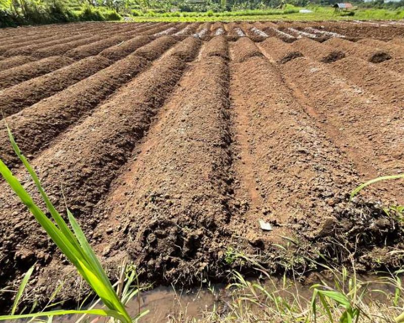Langkah selanjutnya, tanah yang berada di tengah bedengan harus di belah menjadi dua bagian kemudian di naikkan ke pinggir bedengan sehingga kedua sudut bedengan akan membentuk tanah selebar satu meter. Jadi, satu bedeng dengan lebar lima meter terdapat dua bedeng tanaman di sisi kanan dan kiri nya yaitu dengan lebar satu meter.