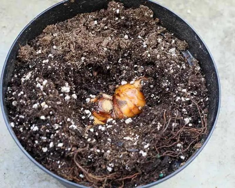 Dengan cara di tempatkan pada ruangan atau tempat sejuk. Kemudian siram dengan air dan di amkan beberapa saat hingga tumbuh tunas baru. Jika ada yang membusuk pada proses ini, segera pisahkan agar tidak menjalar ke rimpang lain.