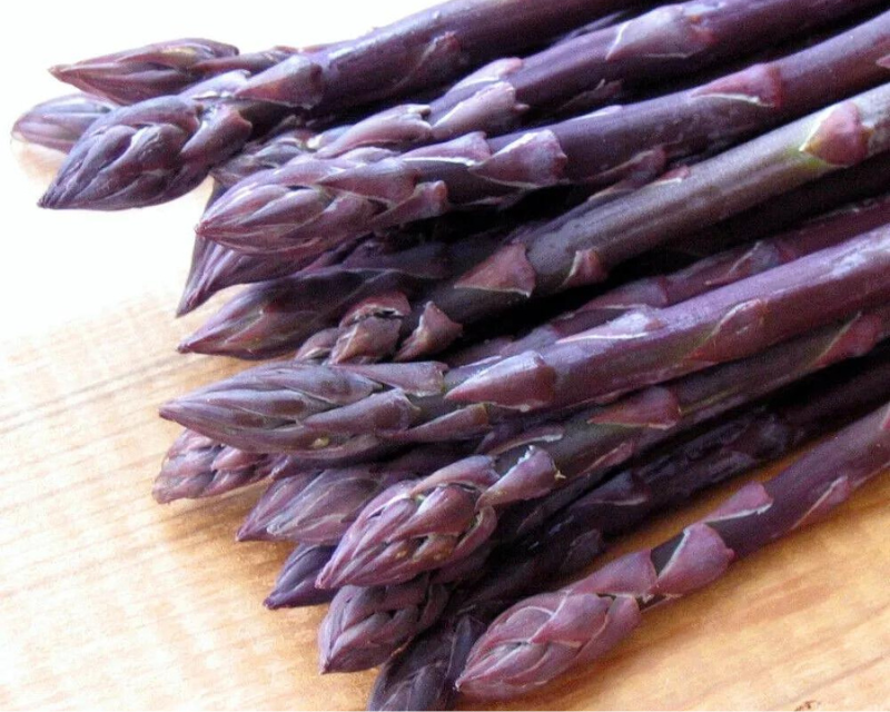 Sayuran berwarna ungu selanjutnya adalah asparagus ungu. Di bandingkan asparagus hijau biasa, varietas ungu rasanya lebih manis. Tingginya kadar antosianin pada asparagus ungu menjadikan sayuran ini bermanfaat untuk mengatasi peradangan dan melindungi tubuh dari penyakit jantung, diabetes, dan penyakit parkinson.