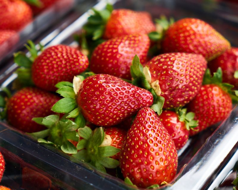 Stroberi mengandung vitamin C, vitamin A, serat, antioksidan, dan banyak nutrisi lain. Vitamin C membantu meningkatkan sistem kekebalan tubuh dan menjaga kesehatan kulit, sedangkan vitamin A baik untuk penglihatan.