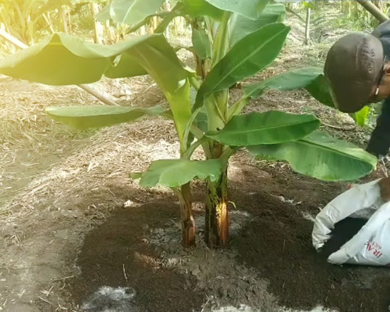 Nah, untuk menjaga penyerapan unsur hara serta mendapatkan pertumbuhan dan kualitas buah pisang yang ideal, sebaiknya dalam satu rumpun hanya terdapat 3 atau 4 anakan saja.