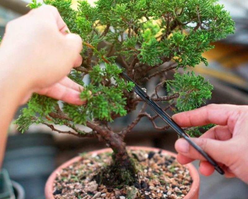 Gunakan gunting khusus yang di rancang untuk memangkas daun pada tanaman bonsai agar meminimalisir kesalahan pemotongan. Karena ukuran tanaman bonsai yang kecil, tanaman hias ini memerlukan perhatian khusus mulai dari penanaman hingga pemeliharaan.
