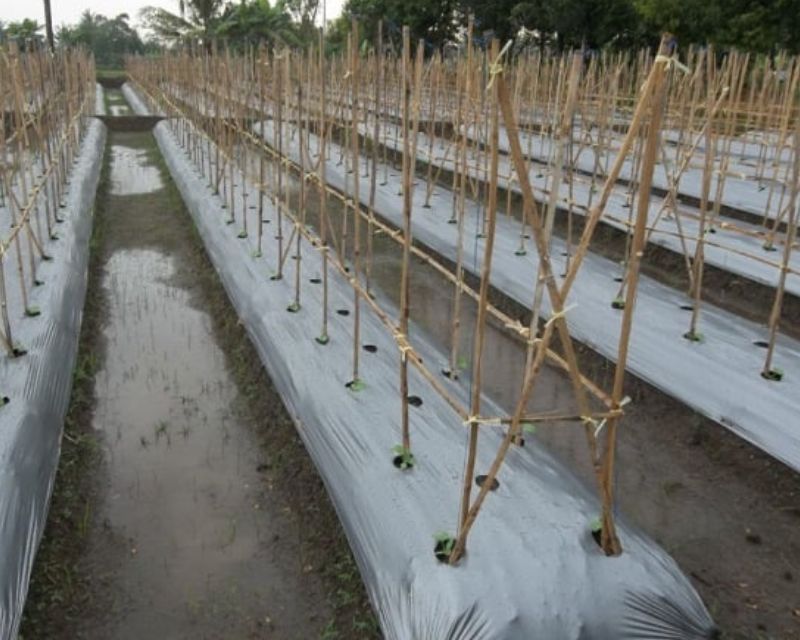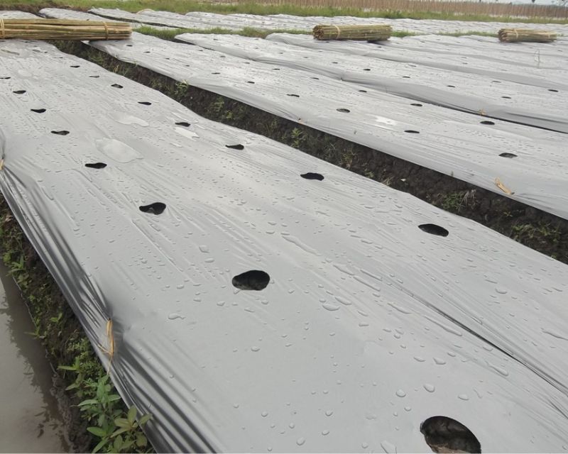 Setelah tanah selesai di siapkan dan bedengan sudah Anda gemburkan serta di beri pupuk dasar, bedengan yang sudah jadi bisa Anda tutup dengan mulsa plastik. Hal itu untuk mencegah penguapan yang berlebihan pada tanah dan juga untuk mencegah tumbuhnya gulma di dalam tanah.