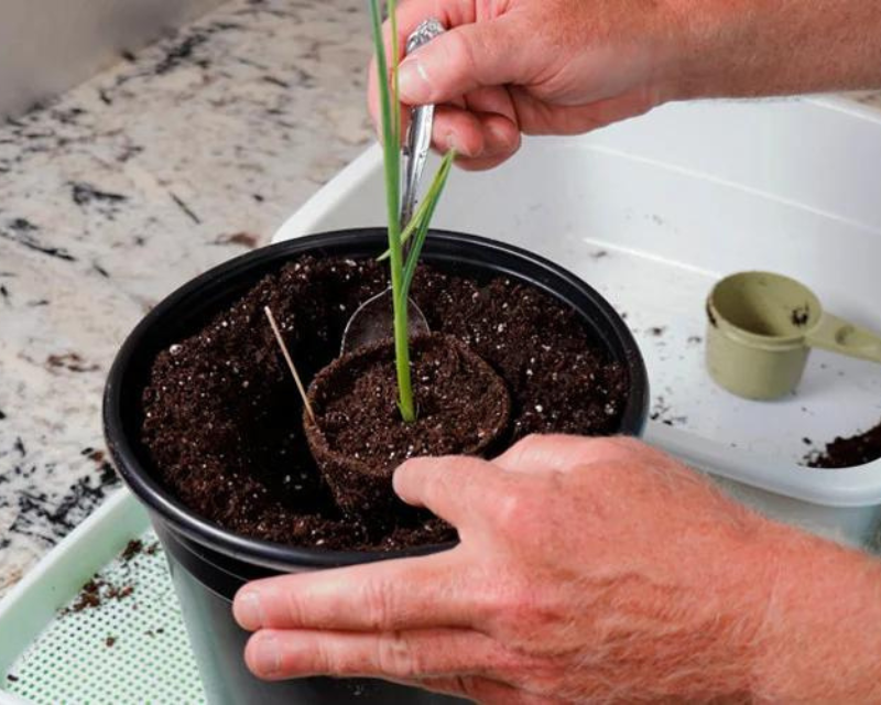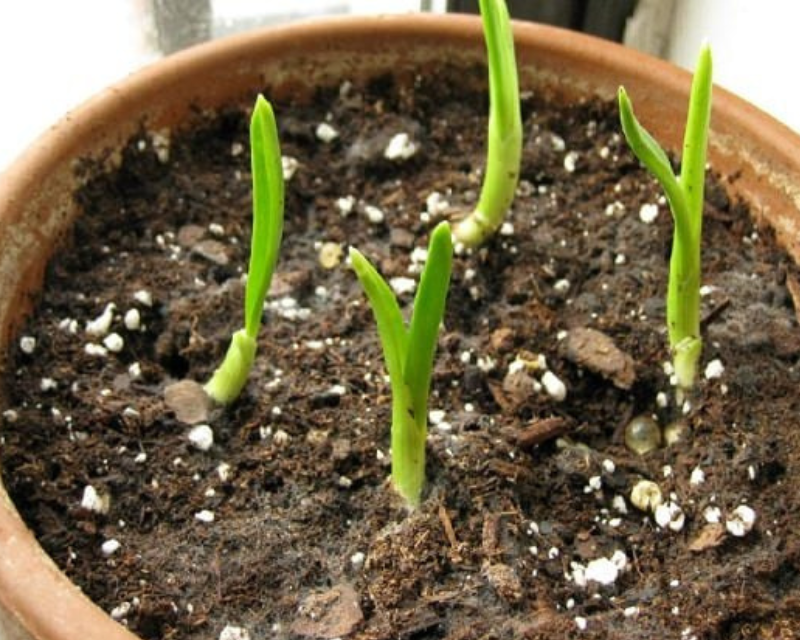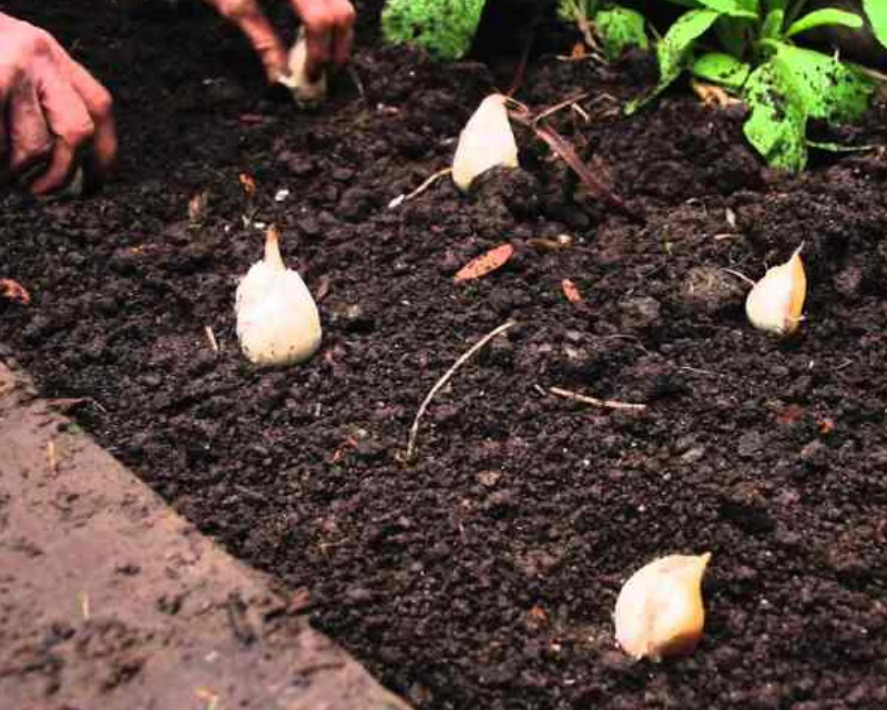 Pastikan juga kamu menempatkan satu siung bawang putih di setiap lubang. Kemudian tutup kembali dengan tanah.