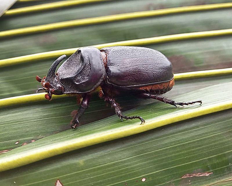 - Sanitasi lingkungan dengan membakar sampah dan pohon palem agar larva atau ulat kumbang bertanduk mati.