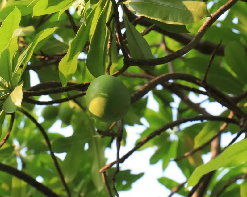 Buah dari pohon yang memiliki nama ilmiah Hippomane mancinella ini beracun karena mengandung senyawa kimia karsinogenik yang menyebabkan tenggorokan terbakar dan sesak napas parah. Di Spanyol, pohon ini di sebut arbol de la muerte yang secara harfiah berarti pohon kematian.