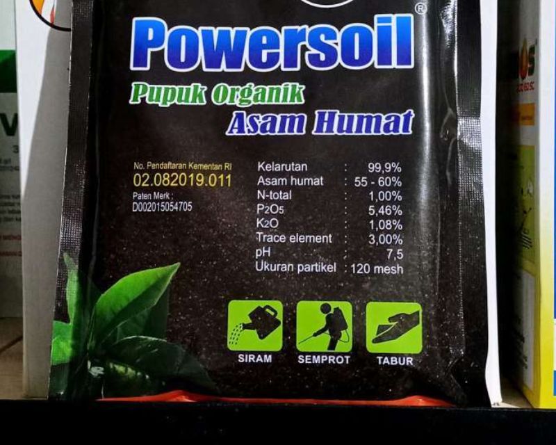 Rekomendasi pupuk yang selanjutnya yaitu Pupuk Power Soil Asam Humat. Pupuk ini memiliki komposisi Asam Humat, C organik, N total, P2O5 total, dan juga K2O total. Perpaduan bahan-bahan tersebut sangat dipercaya sebagai bahan perbaikan tanah tempat tanaman padi di tanam. Pupuk ini akan membuat tanah lebih gembur dan juga menurunkan kadar keasaman tanah.